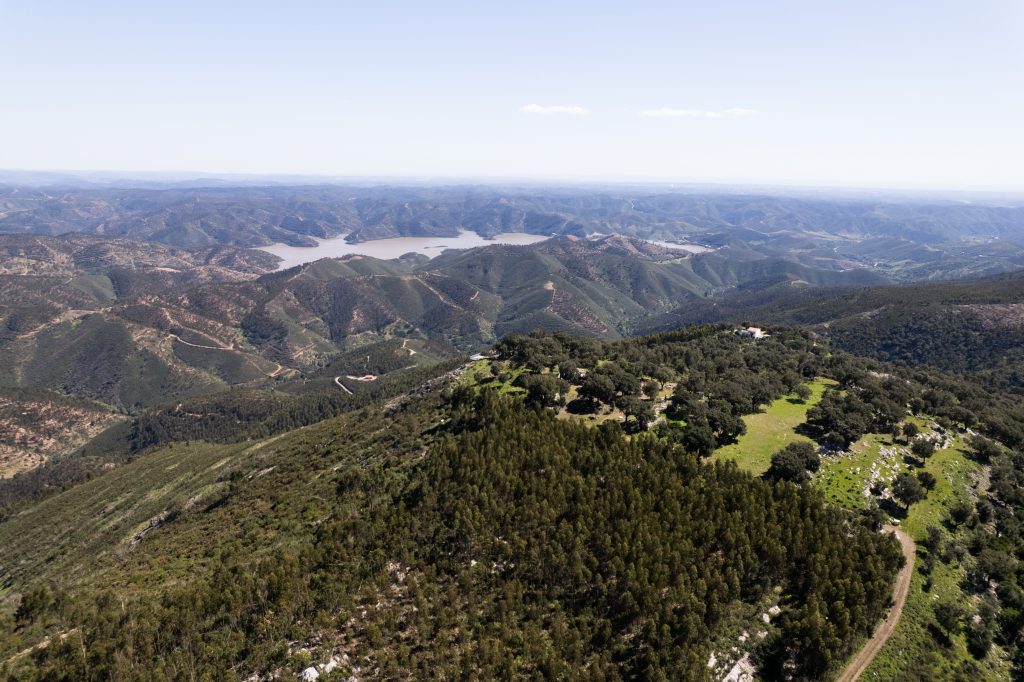 Vista aérea do Sítio Arqueológico do Cerro do Castelo de Alferce e da Barragem de Odelouca